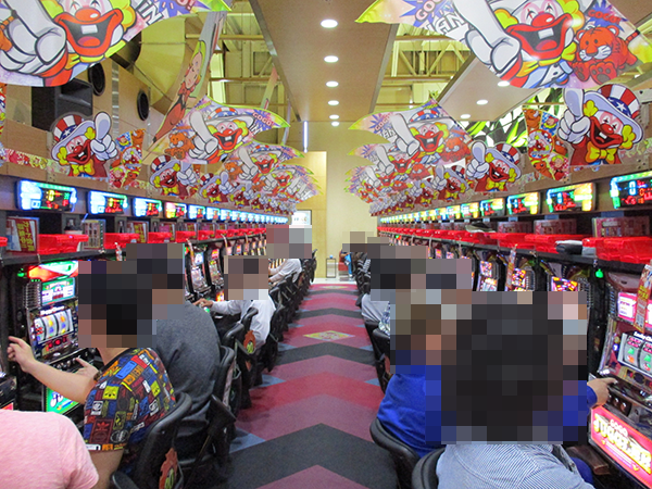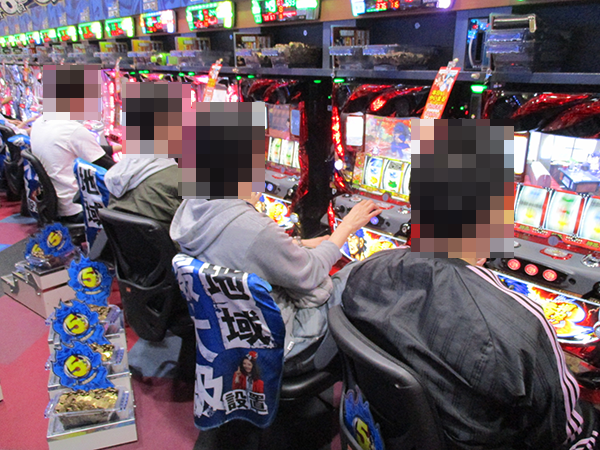 「押忍!番長3」や「押忍!サラリーマン番長」、「パチスロ黄門ちゃま 喝」など多数の機種が活気づいており、満面の笑みを浮かべているプレイヤーの姿が印象的であった。