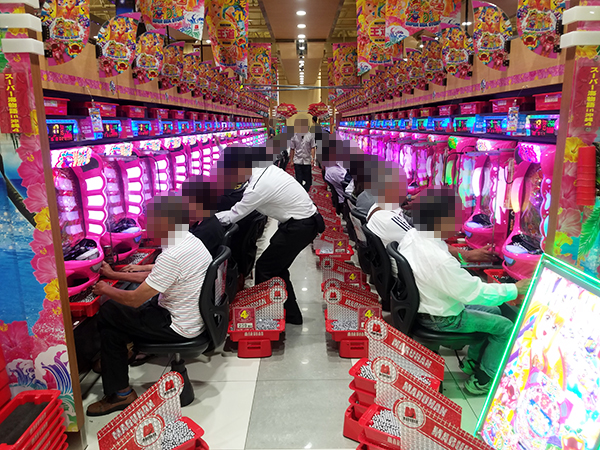 取材当日はファン感謝祭がおこなわれていたこともあって、既に多くのプレイヤーであふれており、パチンコ・パチスロを問わずにぎやかな雰囲気になっていた。