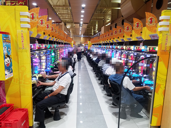 低貸し玉コーナーにおいても、パチンコ・パチスロ共に高稼働。1円パチンコは設置台数の大半を占める海物語シリーズをはじめ、空き台が見当たらないほどにプレイヤーたちが集まり、大いににぎわっていた。