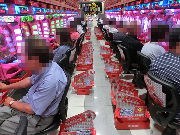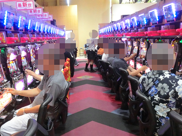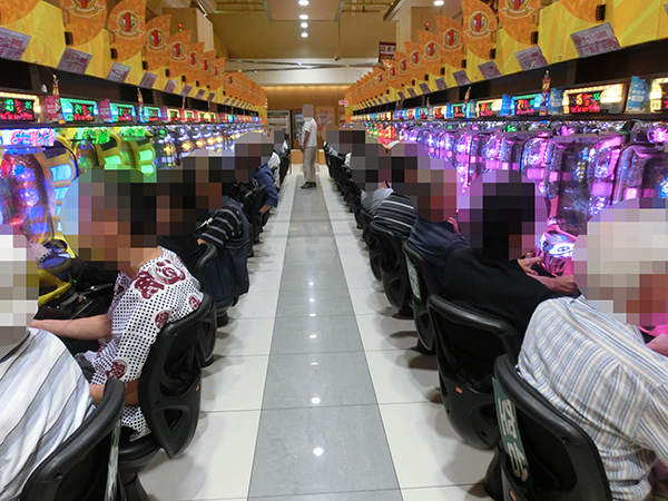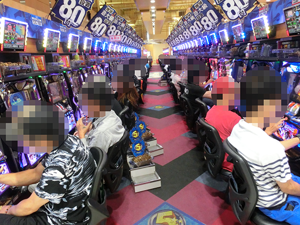 取材時、店内には既に多くのプレイヤーが集結しており、パチンコ・パチスロを問わずにぎやかなムードとなっていた。