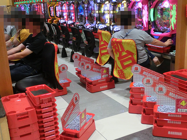 低貸し玉コーナーもパチンコ・パチスロを問わず大盛り上がり。特に1円パチンコの海物語シリーズは大人気で、空き台を探すのがやっとという状況だった。