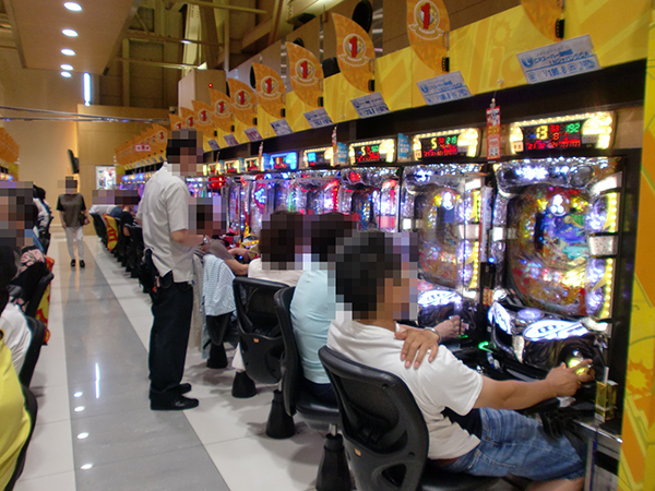 1円パチンコでは海物語シリーズや「ぱちんこCR北斗の拳7 転生」といったミドルから甘デジまで様々なスペックの機種が好まれ、シマ全体が盛り上がりを見せていた。