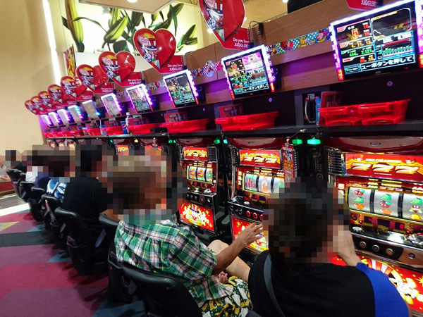 ほかにも稼働率が高かったのがジャグラーシリーズ。定番の「ニューアイムジャグラーEX」を筆頭に、コーナー全体がにぎやかな雰囲気で、シンプルな告知演出を存分に堪能しているように感じた。