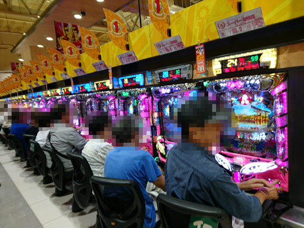 14時ごろの4円パチンココーナーでは、「CRスーパー海物語IN沖縄4」を筆頭とした海物語シリーズや「CR牙狼GOLDSTORM翔」などで、多くのプレイヤーが活躍。心から遊技を楽しんでいるようだった。