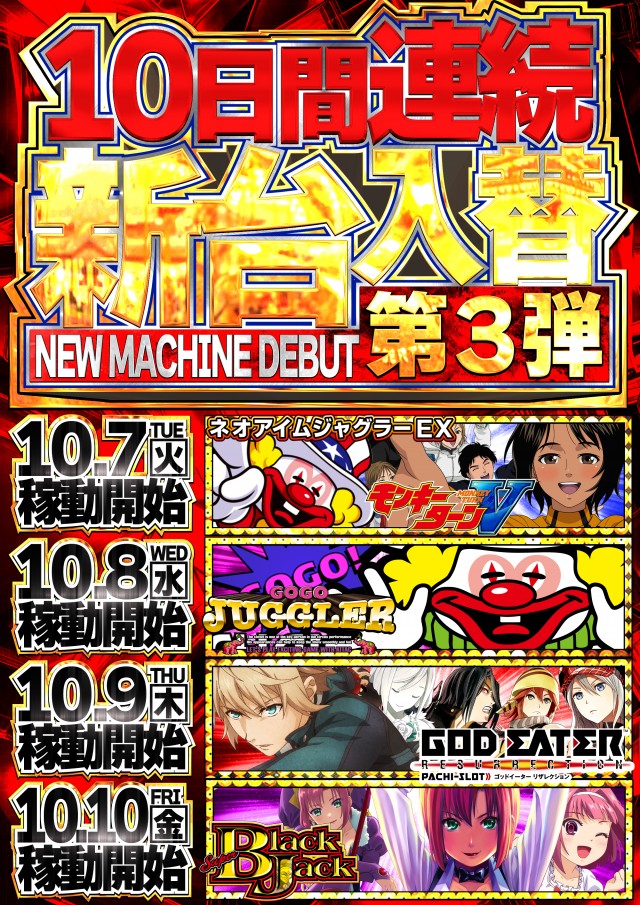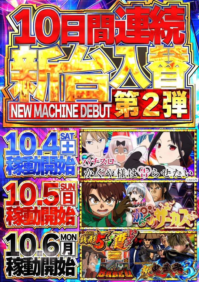 10月4日(土)ヤルヲさん来店予定!10日間連続新台入替!