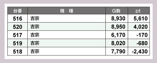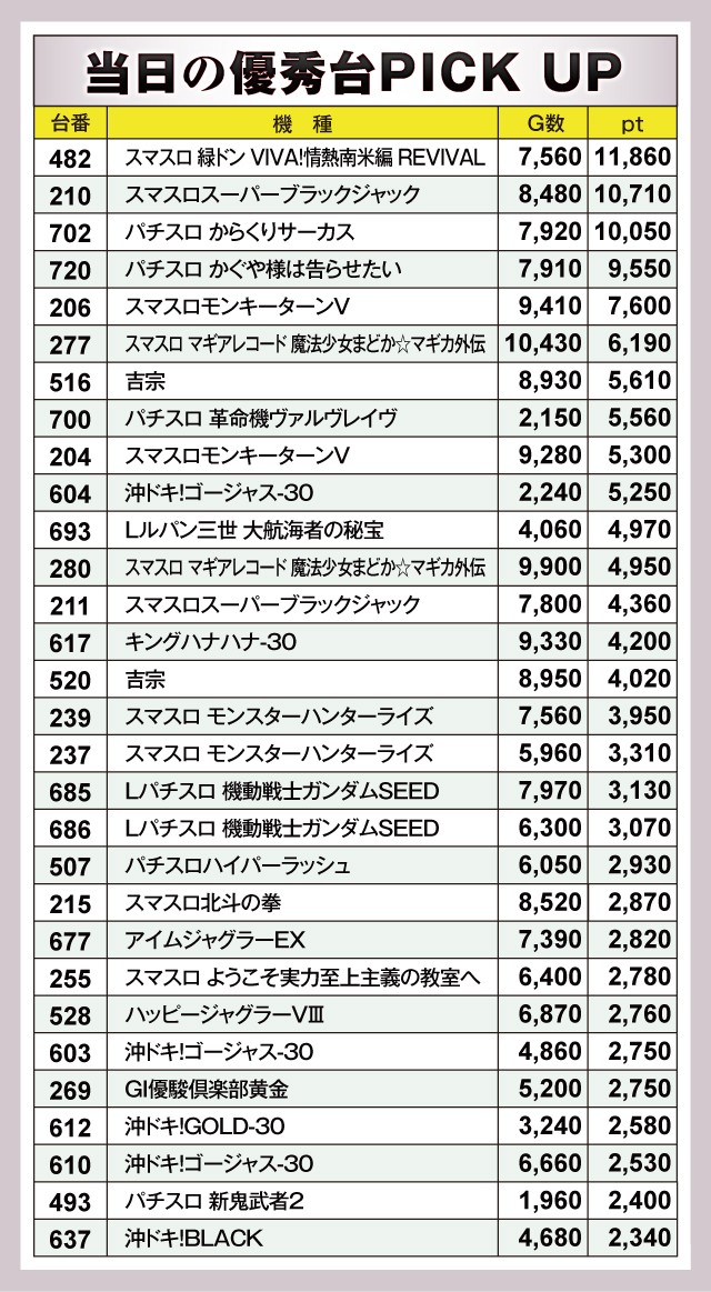 ※差枚pt順に掲載しています。