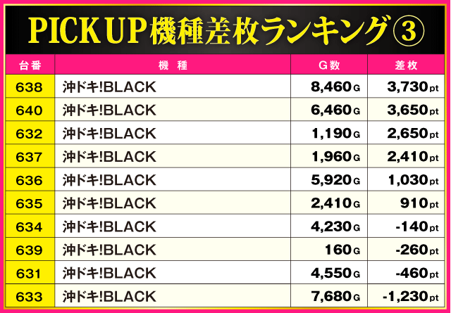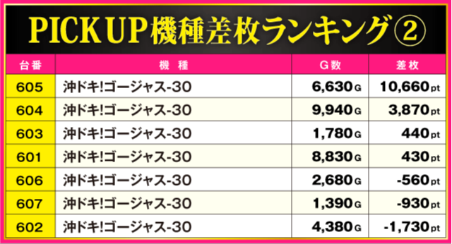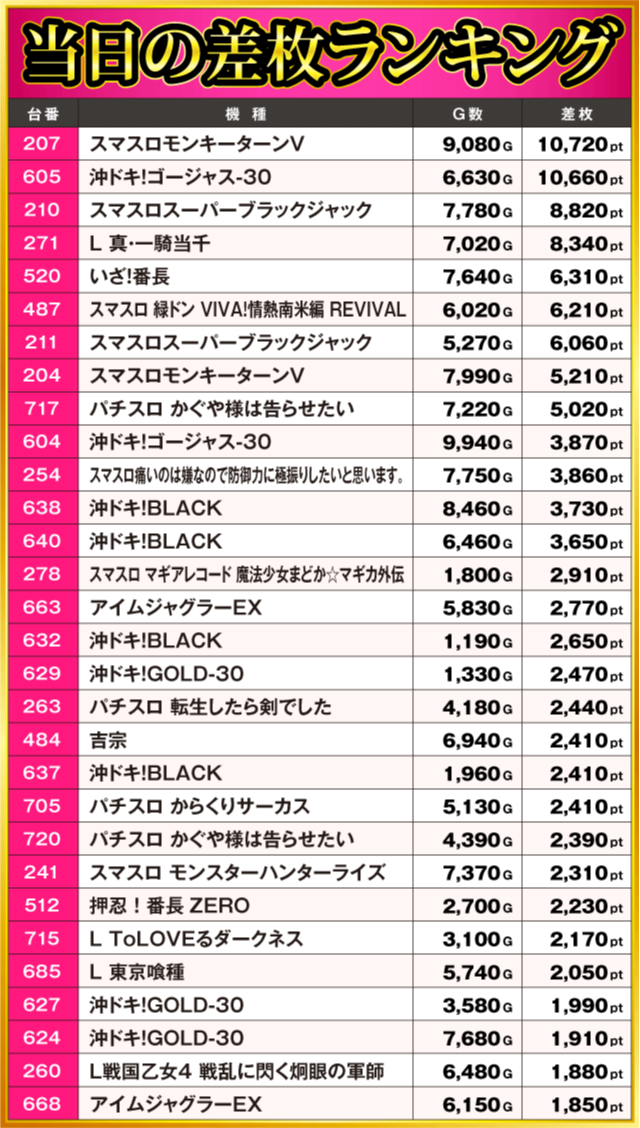 当日の差枚ランキング
