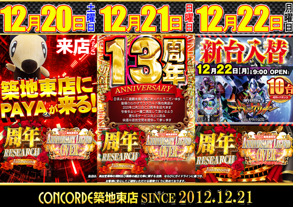 新台入替2日目!コンコルド築地東店でお楽しみください!!!