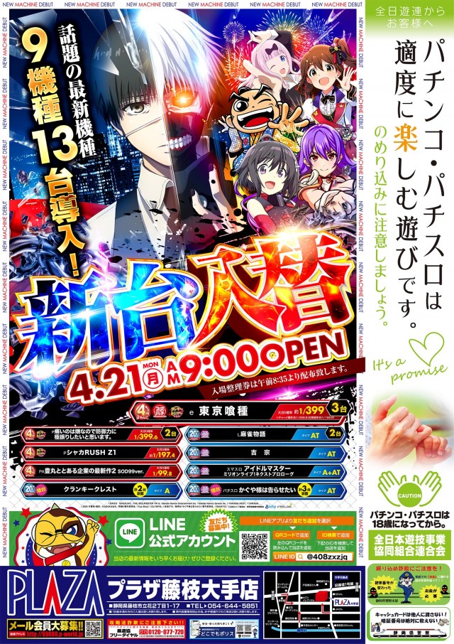 本日新台入替初日!!ご来店お待ちいたしております(*^^)v