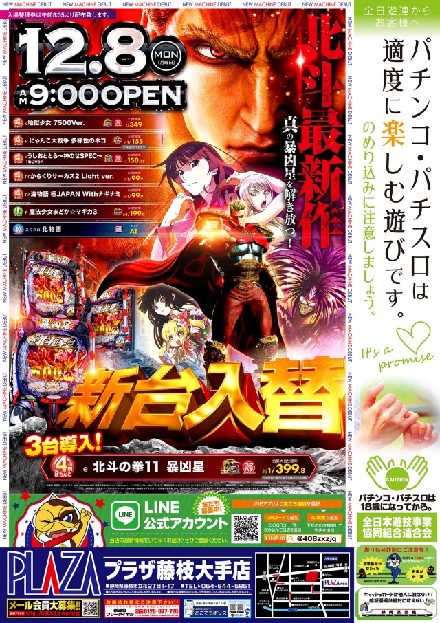 本日新台入替初日!!ご来店お待ちいたしております(*^^)v