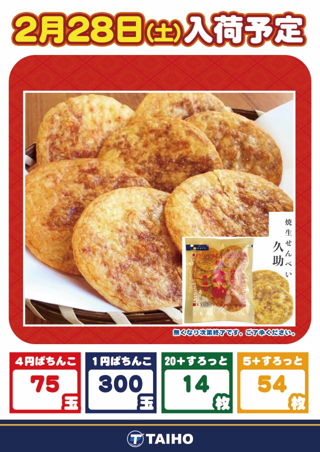 本日2月28日(土)新台入替&タイホーでHAPPY!!