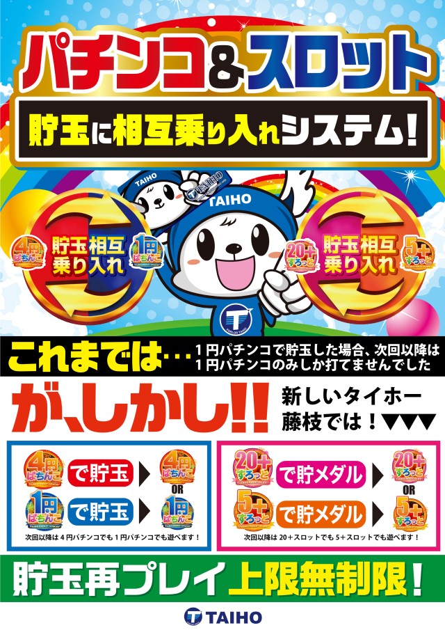 貯玉・再プレイ完備! パチコーナー全台にパーソナルシステム導入済み!