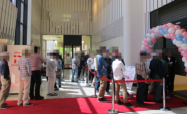 初日となる3日の朝イチは80名前後のプレイヤーが集合。開店を待つイキイキとした表情からは、ホールに寄せる期待の大きさがうかがえた。