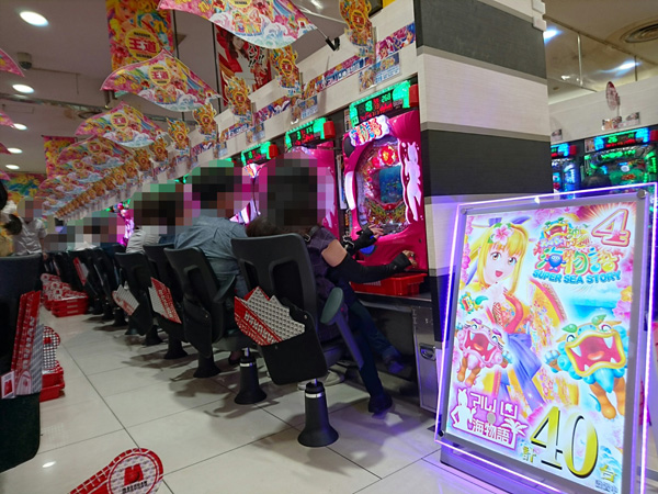15時を過ぎたころの4円パチンココーナーをのぞいてみると、「CRスーパー海物語IN沖縄4」が空き台も見当たらないほどの盛況ぶり。プレイヤーたちの明るい表情から、それぞれが充実した時間を過ごせているように思えた。