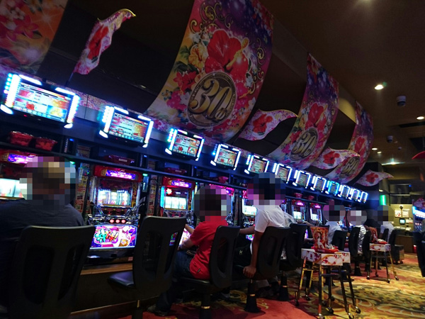 20円スロットコーナーをのぞいてみると、「バジリスク〜甲賀忍法帖〜絆」や「沖ドキ!-30」などに華麗なパフォーマンスを披露しているプレイヤーを確認。