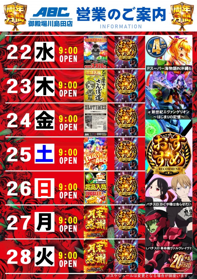 明日周年取材★スロット2機種増台!!