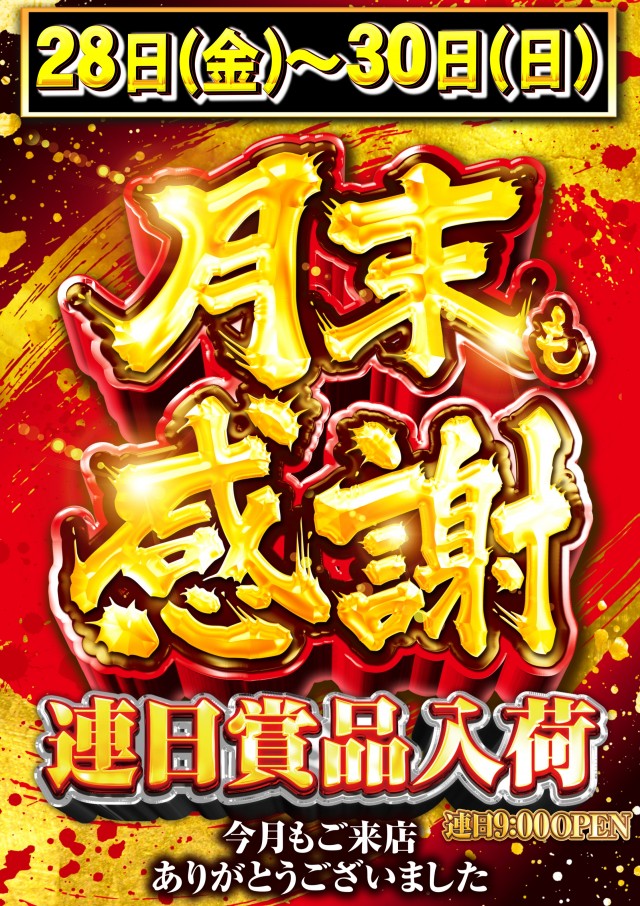 明日「月末も感謝」☆賞品入荷☆是非ご来店ください!
