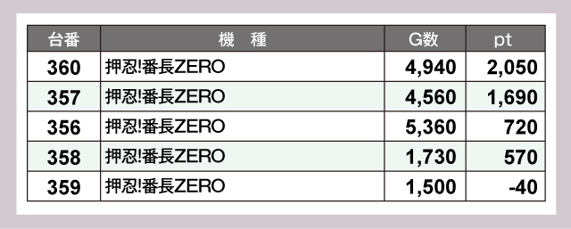『押忍!番長ZERO』は5台中4台がプラスとなっていて、G数がしっかり回されている台が結果を残していた。