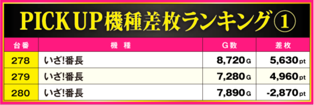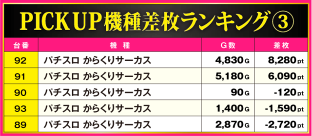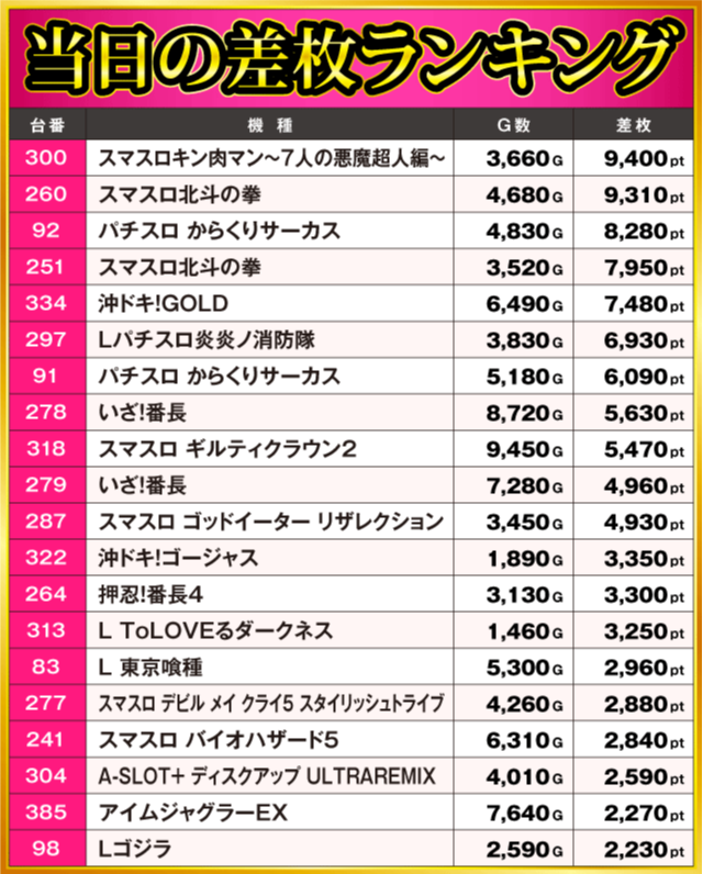 当日の差枚ランキング