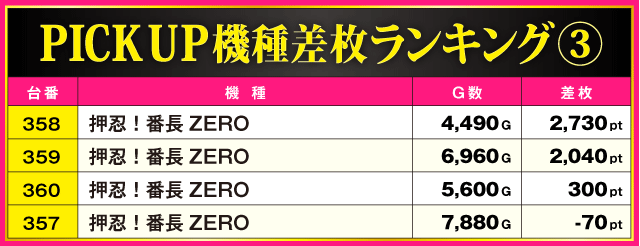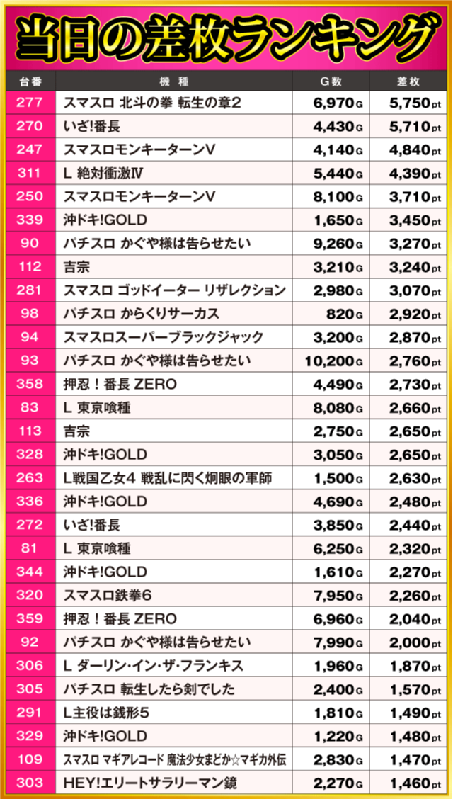 当日の差枚ランキング