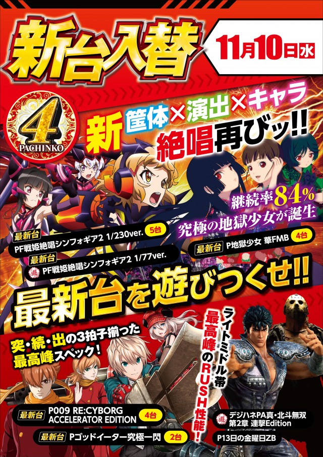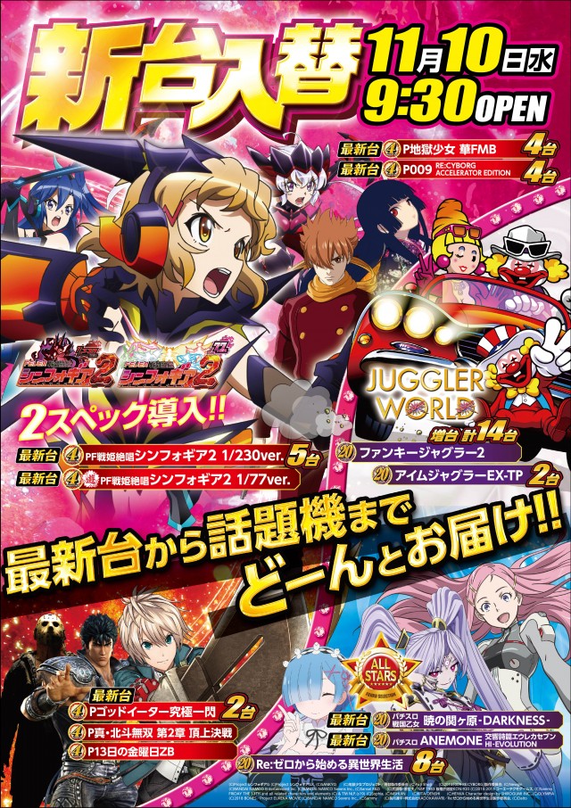 明日11月25日(木)新台入替初日!!9:30START!!