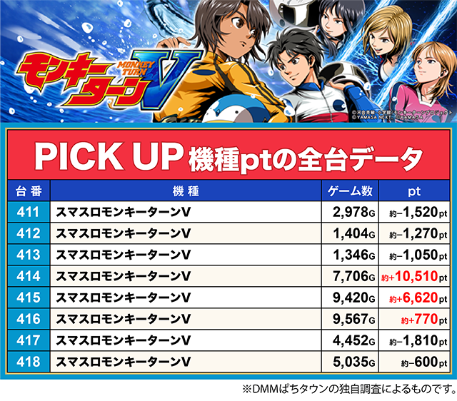 「スマスロモンキーターンV」の414番台が約+10,510pt!