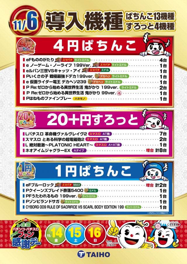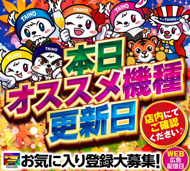 本日オススメ機種・コーナー更新日!大坂でタノシモウ!