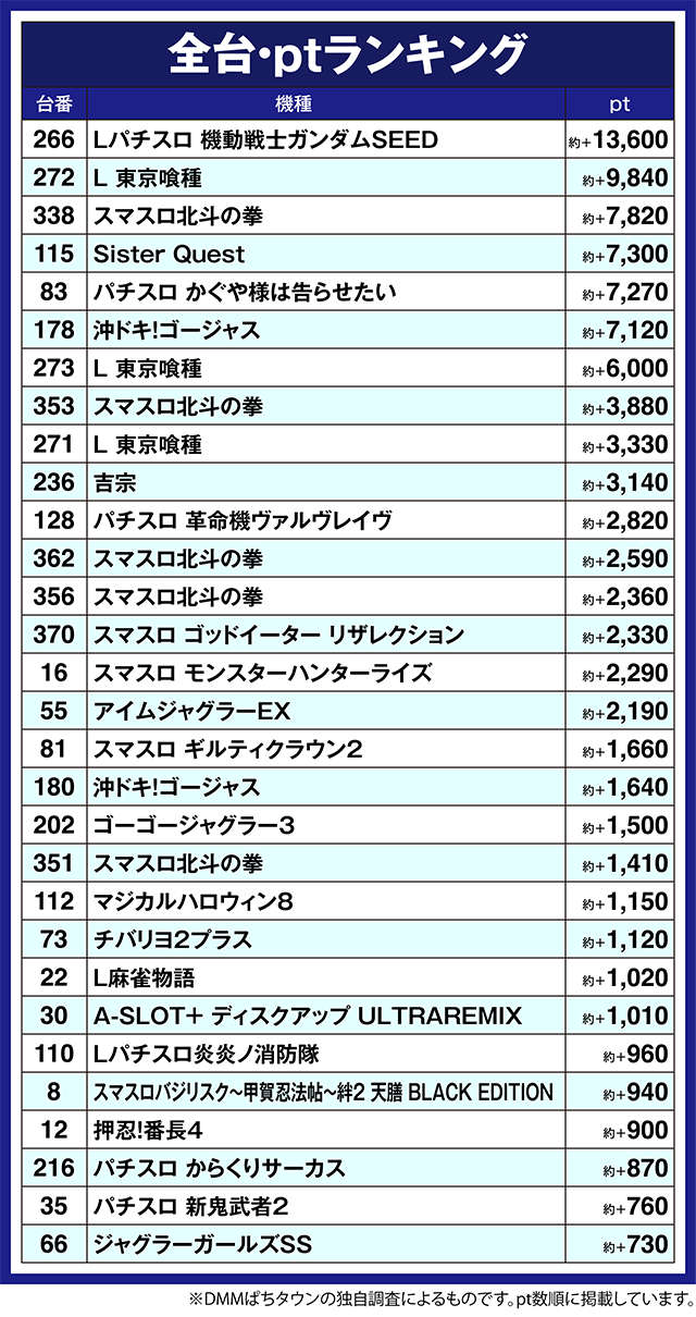 ※なお、本記事中のデータは全てDMMぱちタウンの独自調査によるものです