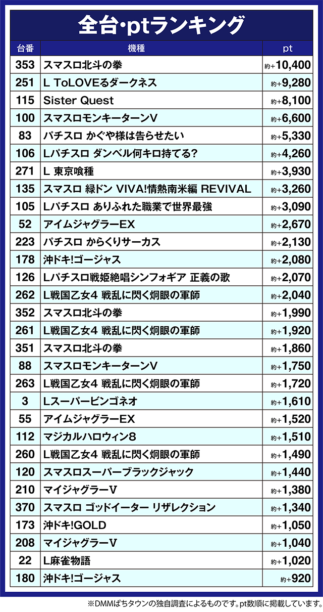 ※なお、本記事中のデータは全てDMMぱちタウンの独自調査によるものです
