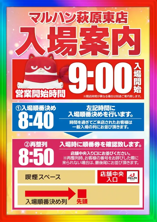 【マルハン萩原東店】9月6日(火)新台入替初日9時00分開店