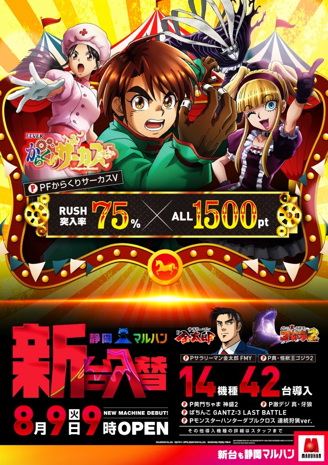 【マルハン萩原東店】明日8月25日新台入替初日9時00分開店