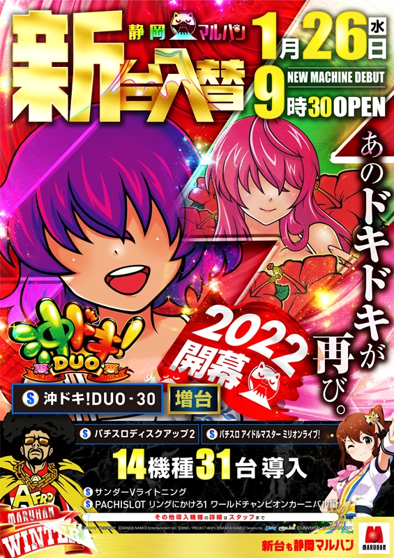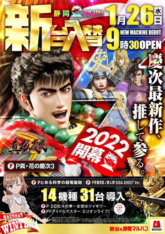 【マルハン萩原東店】1月26日新台入替朝9時30分オープン!
