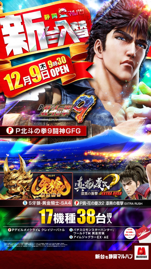 【マルハン萩原東店】12月9日新台入替!朝9時30分オープン