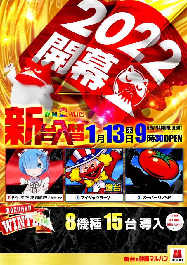 【マルハン萩原東店】1月13日新台入替朝9時30分オープン❗