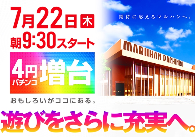 【マルハン萩原東店】リフレッシュオープン!4円パチンコ増台!