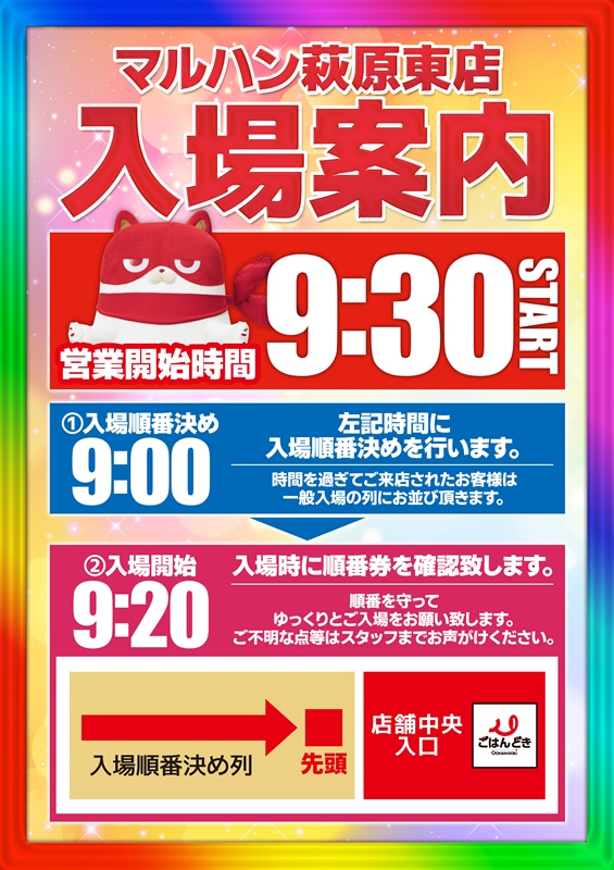 【マルハン萩原東店】明日新台入替初日!朝9時30分オープン!