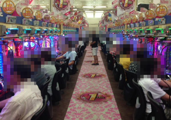 1円パチンコも高稼働。多くのプレイヤーでにぎわっており、笑顔も多い。