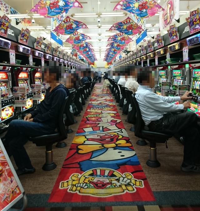 「ニューアイムジャグラーEX」「ジャグラーガールズ」など数多くの機種を揃えるジャグラーコーナーは、世代を超えて人気を集め、筐体から放たれる神々しい光に多くのプレイヤーが魅了されていた。