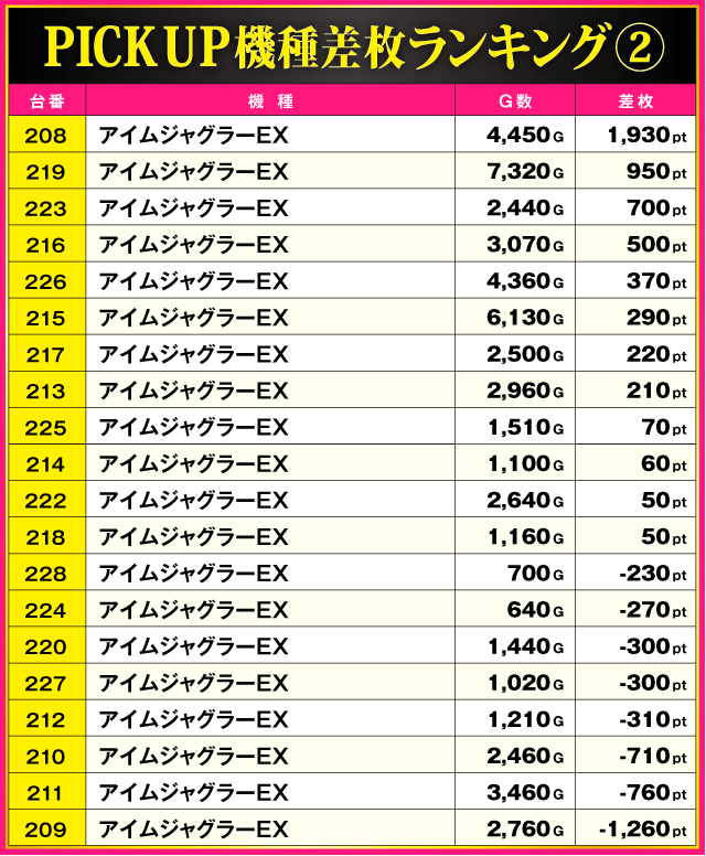 今回のPICK UP機種は『スマスロモンキーターンV』と『アイムジャグラーEX』。両機種を合わせた計24台中15台がプラス差枚で実戦を終了しているだけに、それぞれのシマは常に活気に満ち溢れていた。ファンにとって大満足の一日になったのは間違いないだろう。