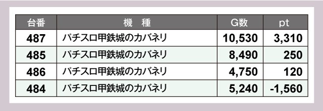 『パチスロ甲鉄城のカバネリ』は4台中3台がプラスと見事な活躍を見せていた。