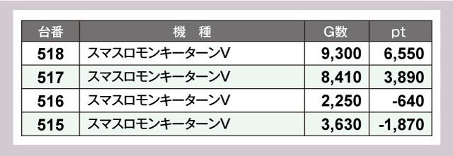 『スマスロモンキーターンV』では、518番台+6,550pt、517番台+3,890ptと見事な記録を残している。
