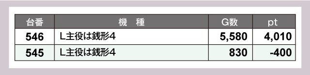 『L主役は銭形4』は546番台が+4,000ptを超える見事な活躍を見せていた。