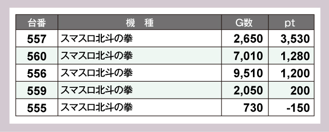 定番人気機種の『スマスロモンキーターンV』と『スマスロ北斗の拳』は、いずれも高G数の台が大きくプラスptとなっていて、プレイヤーの期待に応えていたようだ。