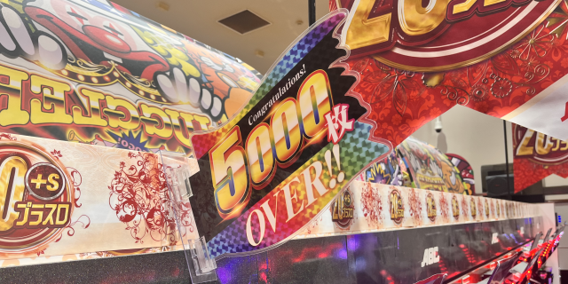 早速、店内状況をチェックすると『パチスロ からくりサーカス』と『スマスロモンキーターンV』がともに+12,000pt超を叩き出しプレイヤーの注目を集めていた。次いで『いざ!番長』が+7,060pt、『アイムジャグラーEX』が+4,050ptを記録するなど、人気機種を中心に多数の好調台が確認されている。