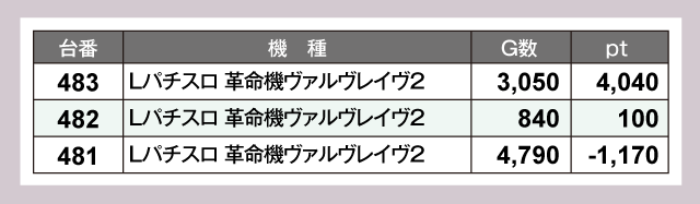 『Lパチスロ 革命機ヴァルヴレイヴ2』と『いざ!番長』はG数が物足りない台が見受けられ、実力を発揮しきれなかったようだ。