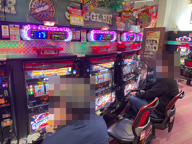 「ファンキージャグラー」と「スーパーミラクルジャグラー」にも機種の魅力を堪能しているといった姿があるなど、ジャグラーシリーズ全体が盛り上がっていた。