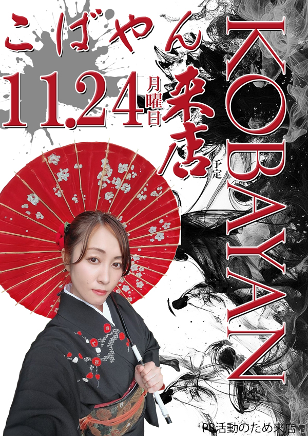 11月24日【月】こばやんさん来店予定!!明日も是非!!