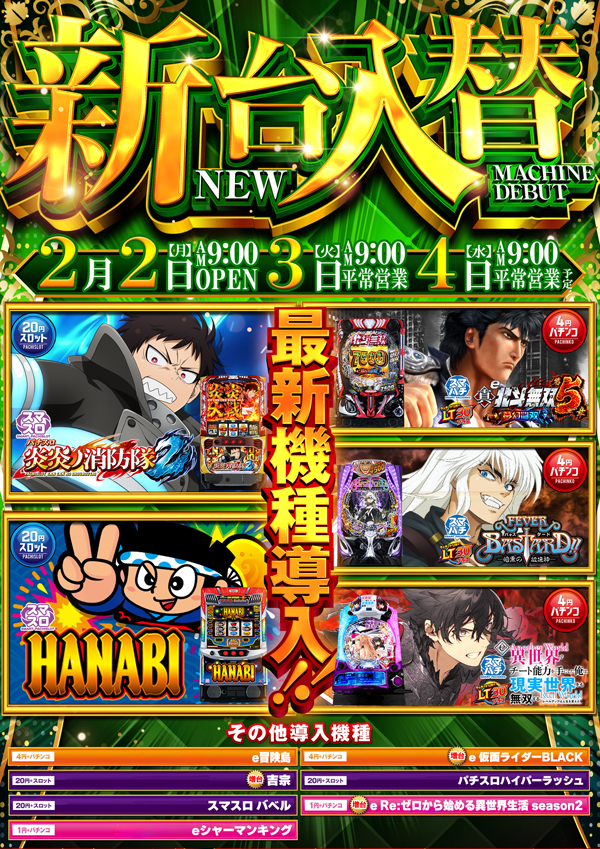 2月3日【火】☆新台入替2日目お待ちしています♪