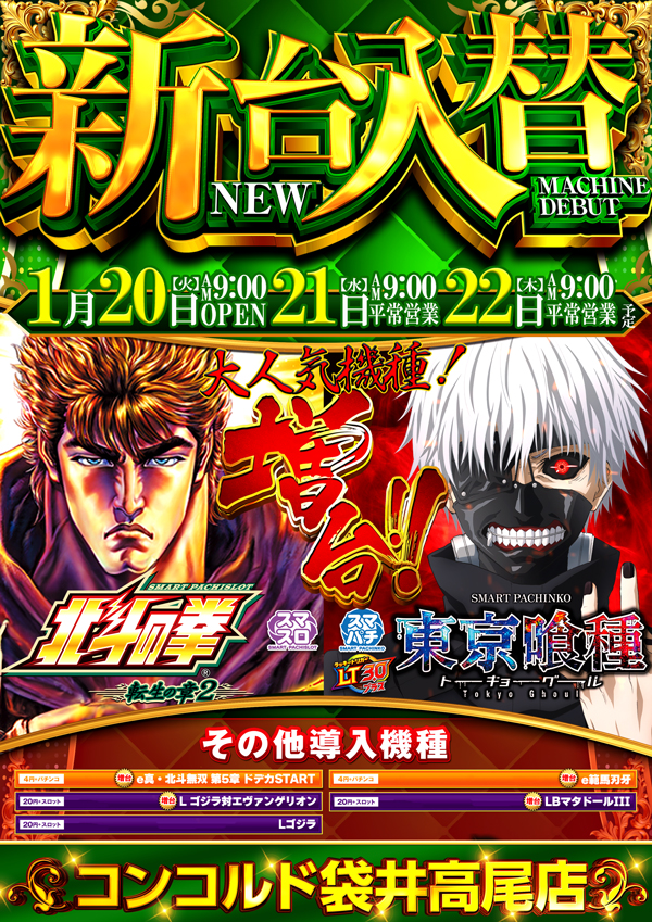 1/20(火)新台入替初日!!大人気機種増台!!