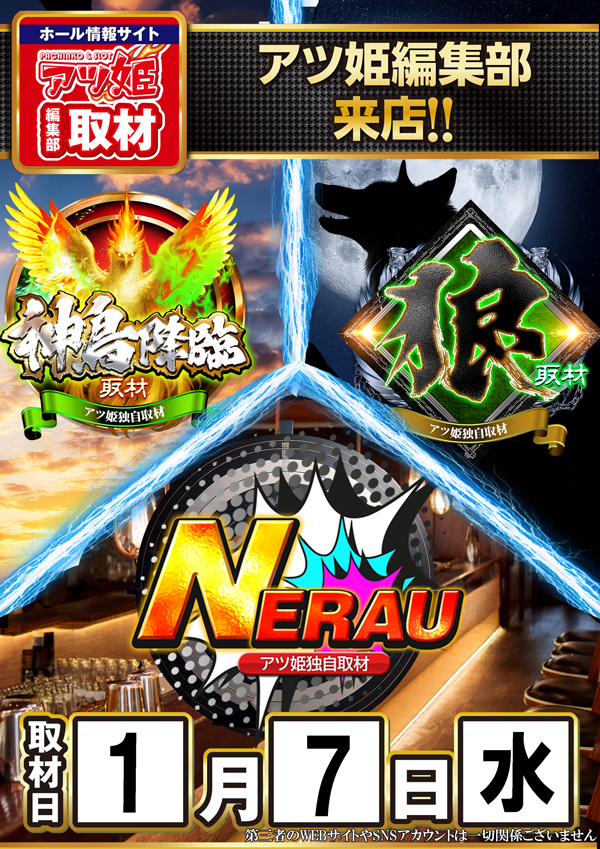 1/8(木)新台入替!!明日も是非!!ご来店ください!!